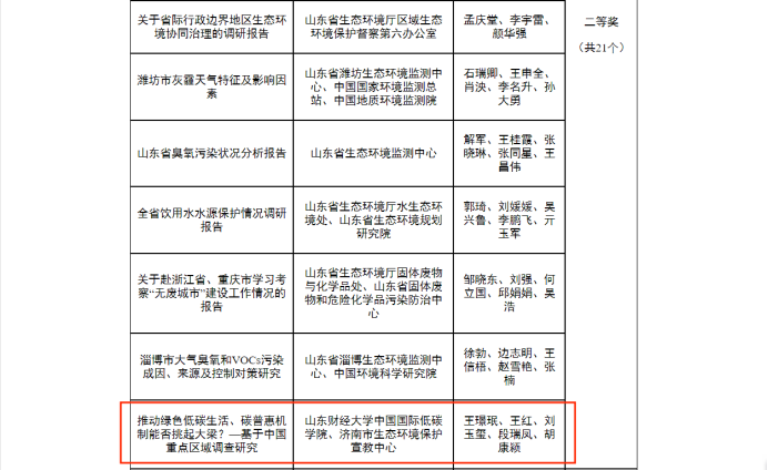 近日,2022年山东省生态环境领域优秀调研报告与研究成果评审结果揭晓,必赢bwin官方网站调研课题《推动绿色低碳生活,碳普惠机制能否挑起大梁?——基于中国重点区域调查研究》获评二等奖。